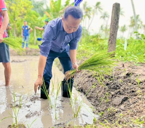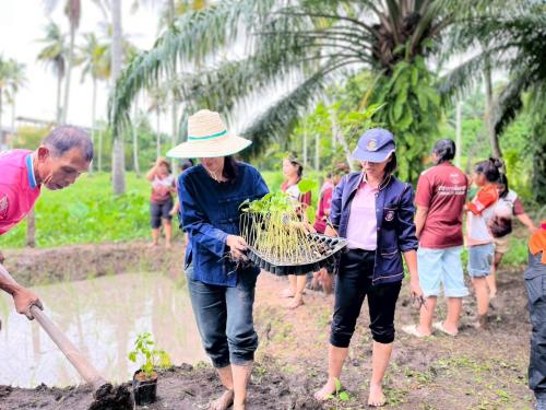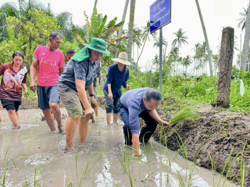 นายชวลิต โรจนรัตน์ นายอำเภอเมืองสุราษฎร์ธานี นำคณะข้าราชการสำนักงานพัฒนาชุมชนอำเภอเมืองสุราษฎร์ธานี นำโดยนางสารภี จีนไทย พัฒนาการอำเภอเมืองฯ พร้อมด้วยผู้นำ องค์กรภาคีเครือข่ายพัฒนาชุมชนตำบลวัดประดู่ เจ้าหน้าที่พัฒนาชุมชนจังหวัดสุราษฎร์ธานี ปลูกข้าวแปลงนาสาธิตในพื้นที่ศูนย์เรียนรู้เศรษฐกิจพอเพียงบ้านตลาดกล้วย ซึ่งดำเนินการโดยนายจินดา หิรัญรัตนธรรม ผู้นำอาสาพัฒนาชุมชนตำบลวัดประดู่